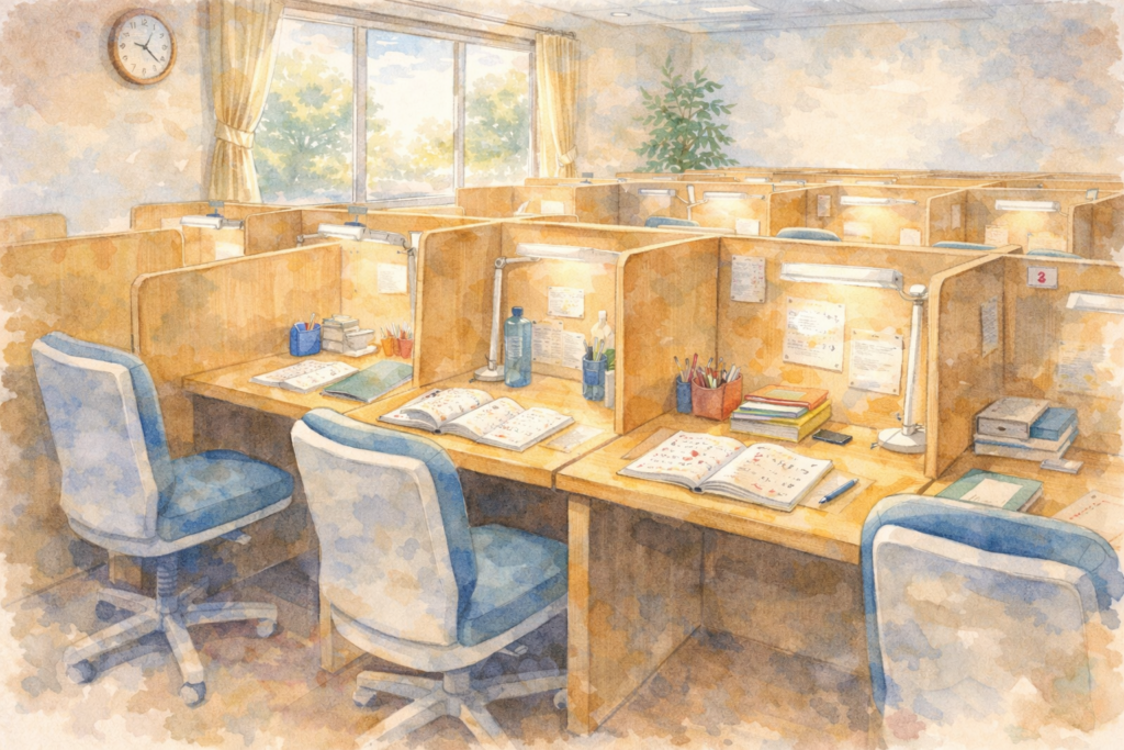 塾の自習室は、勉強モードに切り替えやすく、同じ目的を持った仲間と一緒に集中できるのが魅力です。